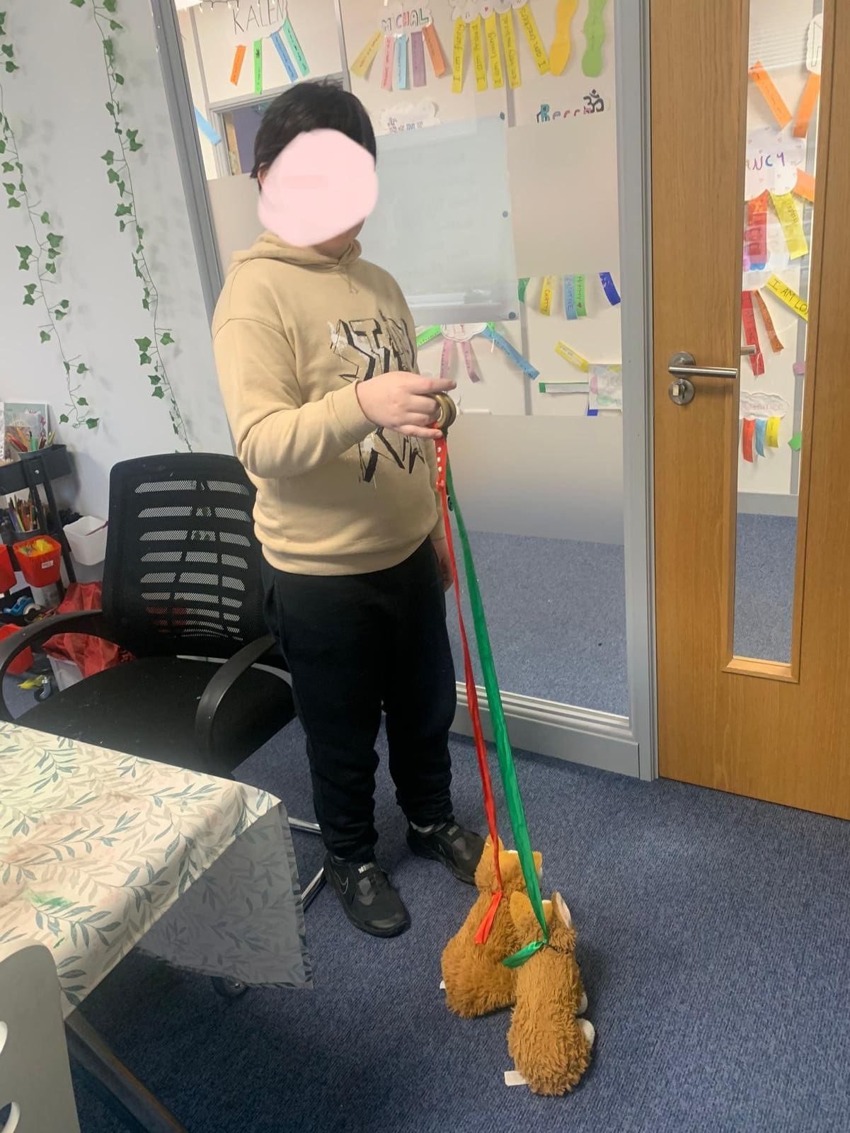 One of our Hubsters got very creative this half term and made dog leads for his prized toys Ben and Max! He crafted the superb leads using colourful ribbon, gems and embellishments. The leads were not just functional; they were little masterpieces, reflecting the sparkling creativity of their maker. Our Hubster proudly paraded his plush friends around the Hub and they received lots of admiration from staff and peers alike.