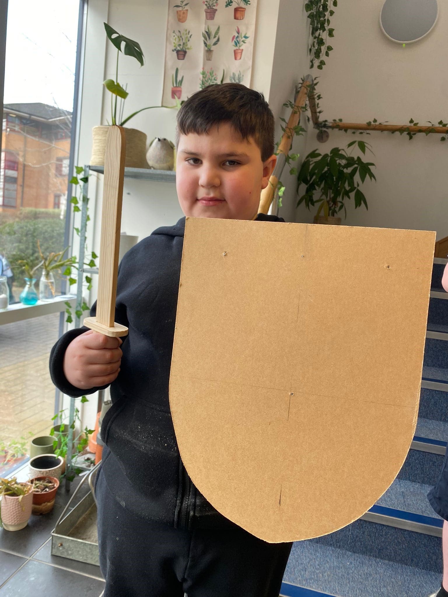 Two of our students were lucky enough to learn how to make their very of sword and shield out of wood! ⚔️ 🛡️ Rod showed them how to safely use a coping saw, hammer a nail and sand the wood down to leave a smooth finish! They have been busy planning a story to role play so watch this space 🎥